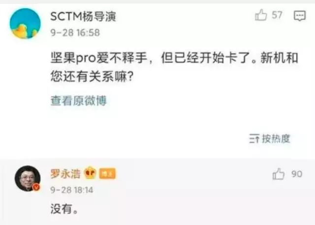 但对新手机老罗显然不满意,发售前,就在微博上直言“不会买”,“系统广告和 Bug 多”,并且直接开怼浴霸设计。