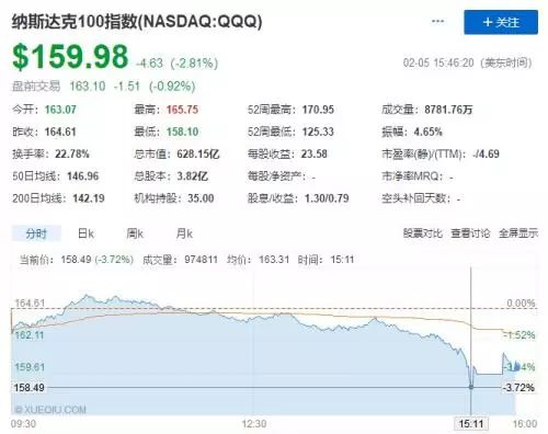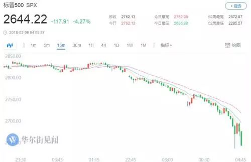 周一(2月5日)美国股市再遭“黑色星期一”!恐慌指数“爆表”,美市尾盘,标准普尔500指数回落4.2%,跌破2700点大关,其也抹去了今年的涨幅。道琼斯工业平均指数暴跌1500点,进入回调区域。纳斯达克综合指数下跌3.6%,盘中一度上涨0.5%。