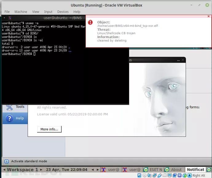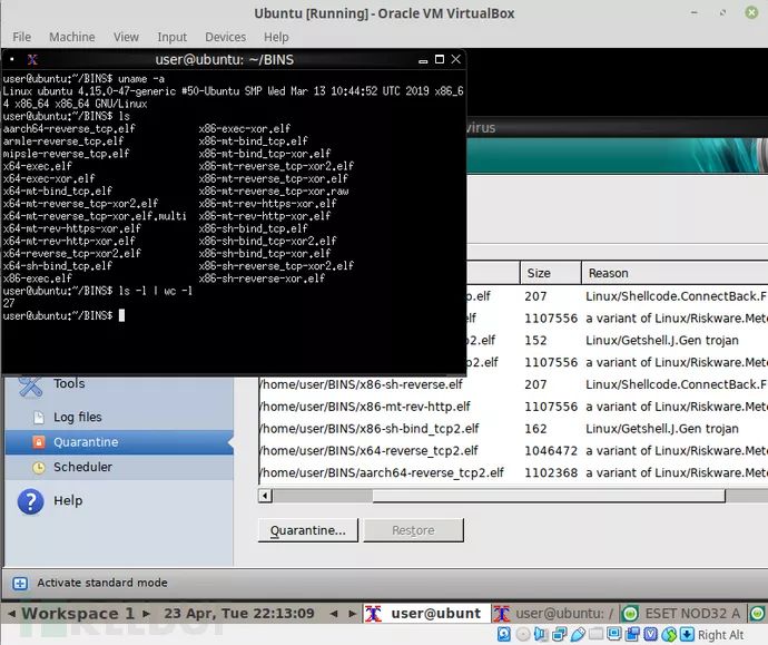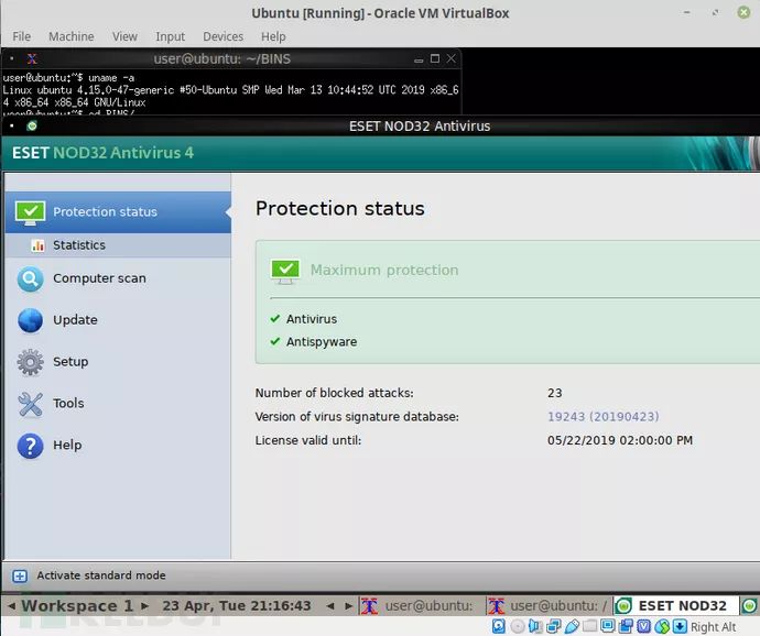 在第一个测试场景中,我们将在Ubuntu 18.04(x86_64)上使用Eset NOD32 4.0.90: