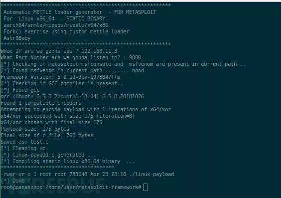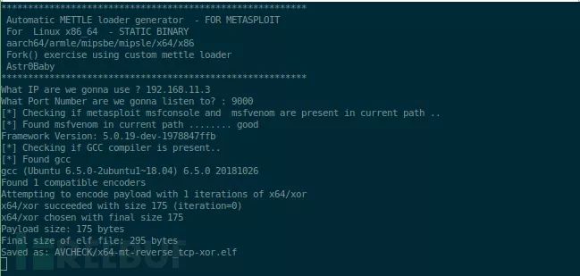 我将重点关注使用各种编码器组合的Linux x86 和 x86_64 Meterpreter/Mettle payloads。shell脚本生成器包含可以更改的变量名称,以使用喜欢的组合和自动生成二进制文件的进程。