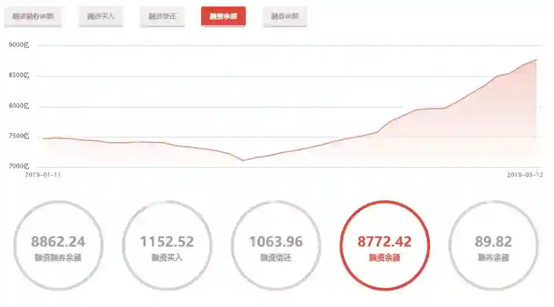 截至3月12日融资余额为8772亿元,尚未出现向下拐点。