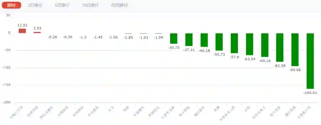 热点题材几乎全面熄火,行业中仅有房地产开发和饮料制造实现了资金净流入。