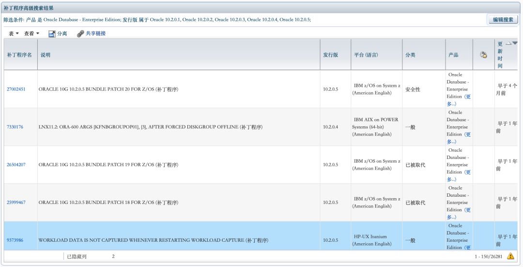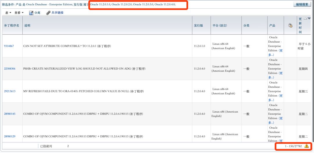 当然,这补丁数量还是远远低于Oracle11.2系列的27782个: