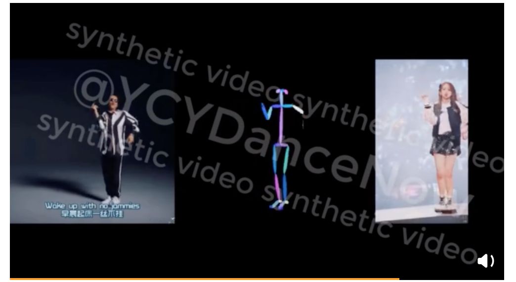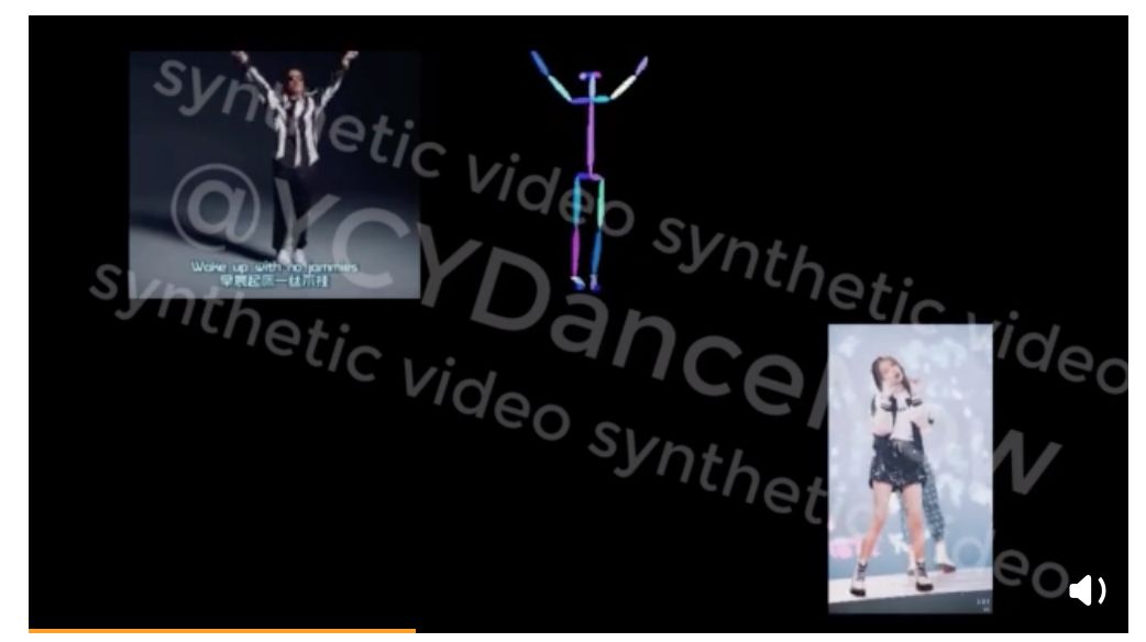 技术原理:基于 pix2pixHD 生成对抗网络和时域空间平滑的运动转移方法。使用姿势检测作为用户舞蹈和杨超越舞蹈之间的中间表示,学习从姿势图像到杨超越主体外观的映射。