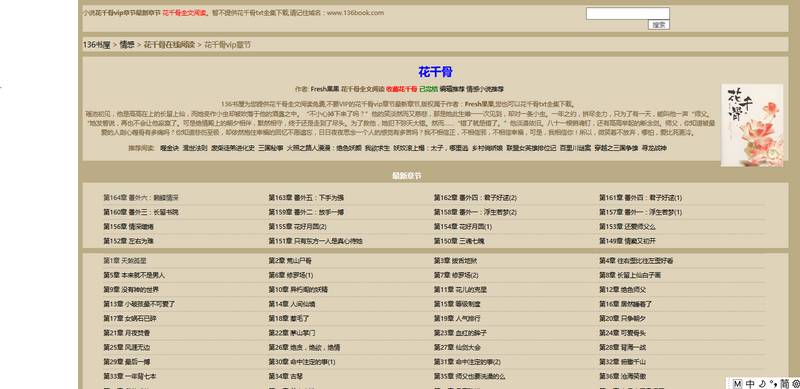 继续往下看,发现是最新章节板块,然后便是全书的所有目录。我们分析的对象便是全书所有目录。点开其中一个目录,我们便可以都看到正文内容。