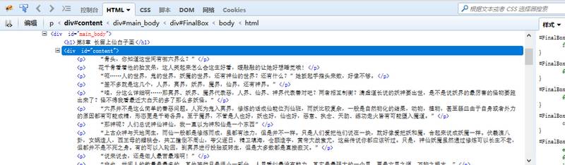 有耐心的朋友可以在里面找到对应的章节目录内容。有一个简便方法是点击审查元素中左上角箭头标志的按钮,然后选中相应元素,对应的位置就会加深显示。