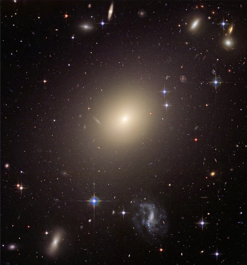 有的星系和我们的银河系很像,呈现相对扁平的盘子一样的形状,还有旋转的手臂从中心向外延伸,整个星系如果从侧面看是一个细长条。有的星系更像一个胖乎乎的椭球,从哪个方向看都是圆滚滚的。有的星系颜色发蓝,有的明显是橙红色。