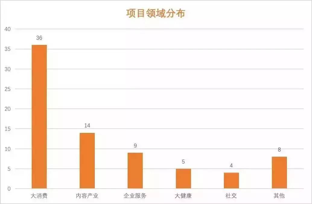 最多的领域来自低启动门槛的大消费、内容产业,其次是企业服务、大健康、社交和其他: