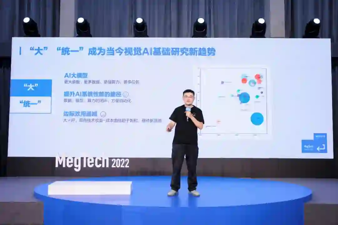 在 MegTech 2022 上,旷视研究院基础科研负责人张祥雨表示:“大”和 “统一” 是视觉 AI 基础研究的新趋势。