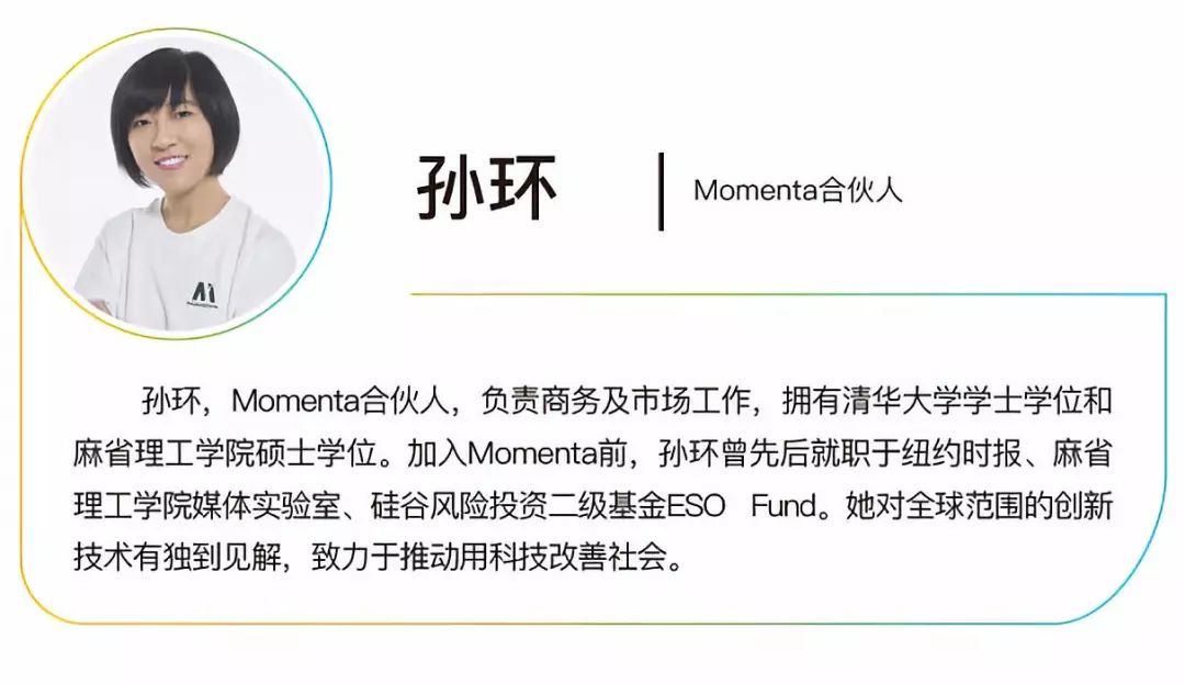 孙环:我是孙环,Momenta的合伙人之一。Momenta的定位是打造自动驾驶的大脑,核心技术主要三个方面:一是环境感知;二是高精度地图;三是驾驶决策。与其他自动驾驶公司不同的是,我们这三个方面都是借助深度学习进行的,核心能力是用深度学习、AI技术去赋能自动驾驶。Momenta已经打造了多个不同级别的自动驾驶产品和解决方案,包括L3级别面向高速公路和城市环路的自动驾驶解决方案、L4级别自主泊车解决方案以及L4级别城市道路的自动驾驶解决方案。
