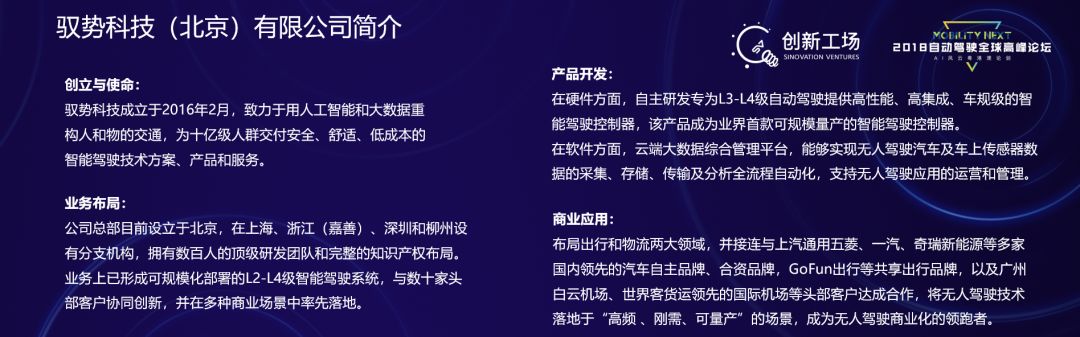 梅彦川:我是梅彦川,来自驭势科技。驭势科技是2016年2月份设立的一家无人驾驶公司,我们目前的产品覆盖了从L2到L4的智能驾驶系统。我是几个月前加入驭势的,是一个无人驾驶方面的新兵,以前长期从事特殊经济型区域的政策研究和区域开发的相关工作。