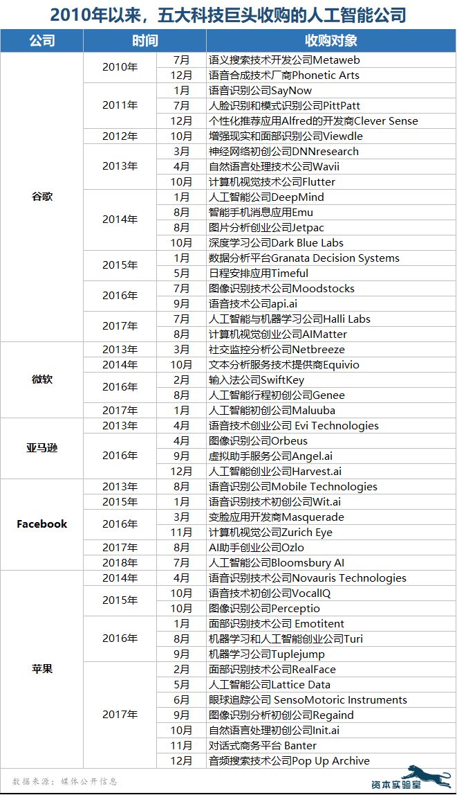 为了保持长期的竞争优势,各大科技巨头正在通过大力度的研发、投资与并购行动,抢占人工智能的制高点。