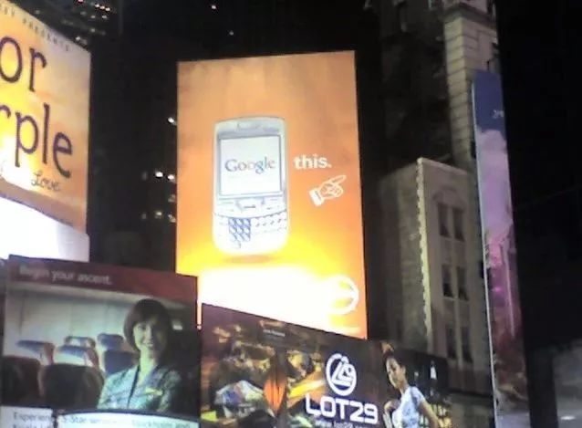 讽刺的是Palm PDA广告内容:谷歌搜索 不是冤家不聚首