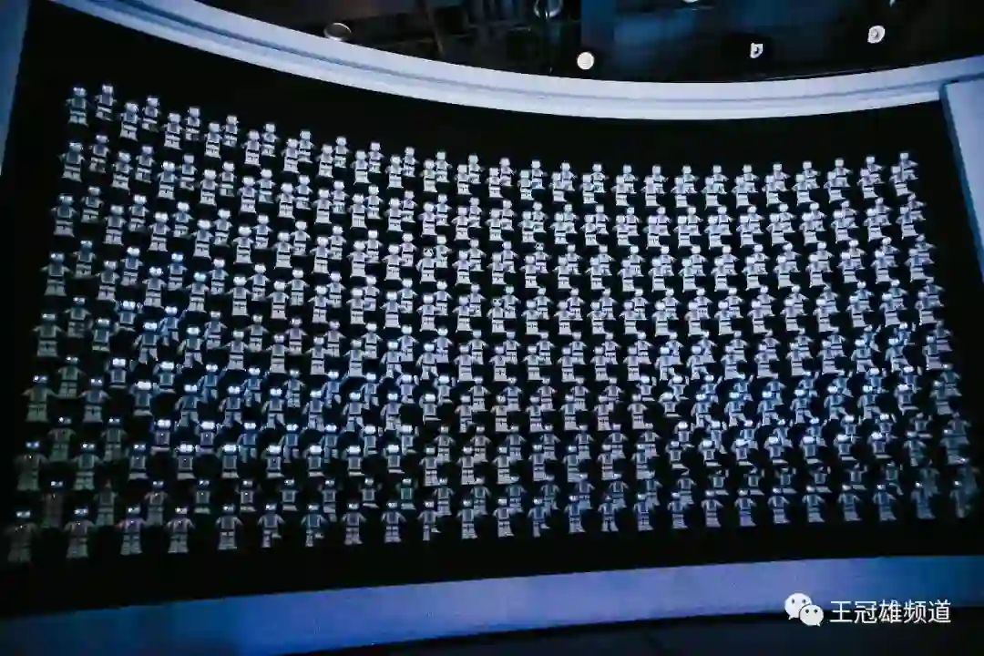 所有打动人心的产品,必定是科技和艺术的完美结合。在此次发布会上优必选还宣布与上海当代艺术馆达成了战略合作协议,双方将融合各自资源,打造AI跨界平台,在科技赋能艺术和用科技展示艺术领域进行深入合作。可以想象,充满艺术感的机器人、以及因人工智能另添魅力的当代艺术,二者创新形式的碰撞将更令人向往。发布会当天,398台悟空组成的艺术展品“Mind Window心灵之窗”通过集体表演,成为上海当代艺术馆现场最为震撼的瞬间。