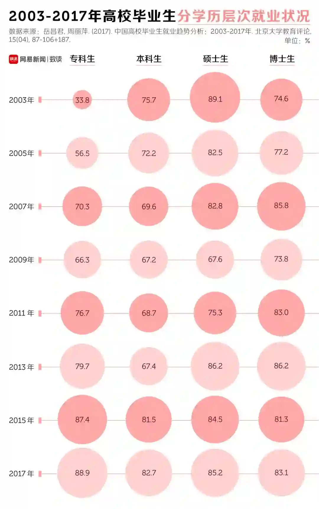[2] 岳昌君, 周丽萍(2017). 中国高校毕业生就业趋势分析:2003-2017年. 北京大学教育评论, 15(04), 87-106+187.