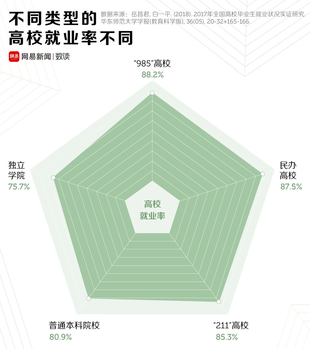 [1] 岳昌君, 白一平(2018). 2017年全国高校毕业生就业状况实证研究. 华东师范大学学报(教育科学版), 36(05), 20-32+165-166.