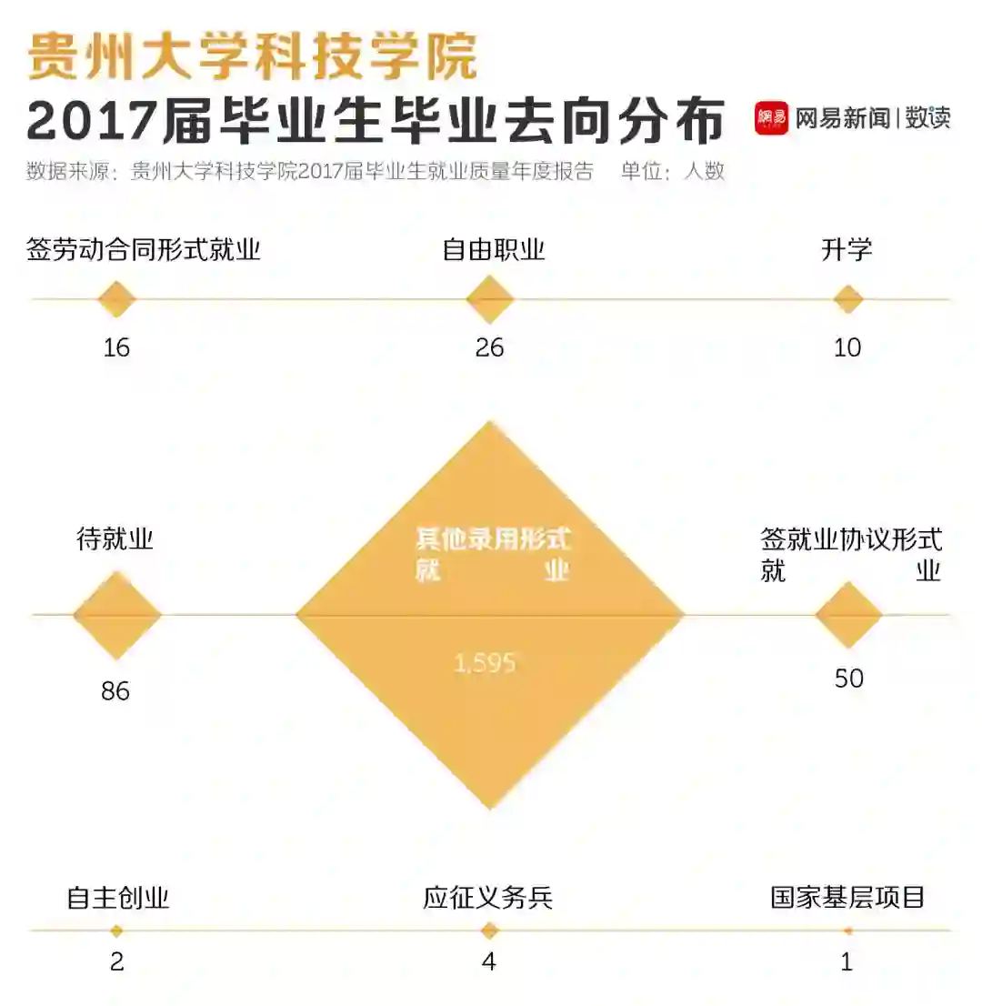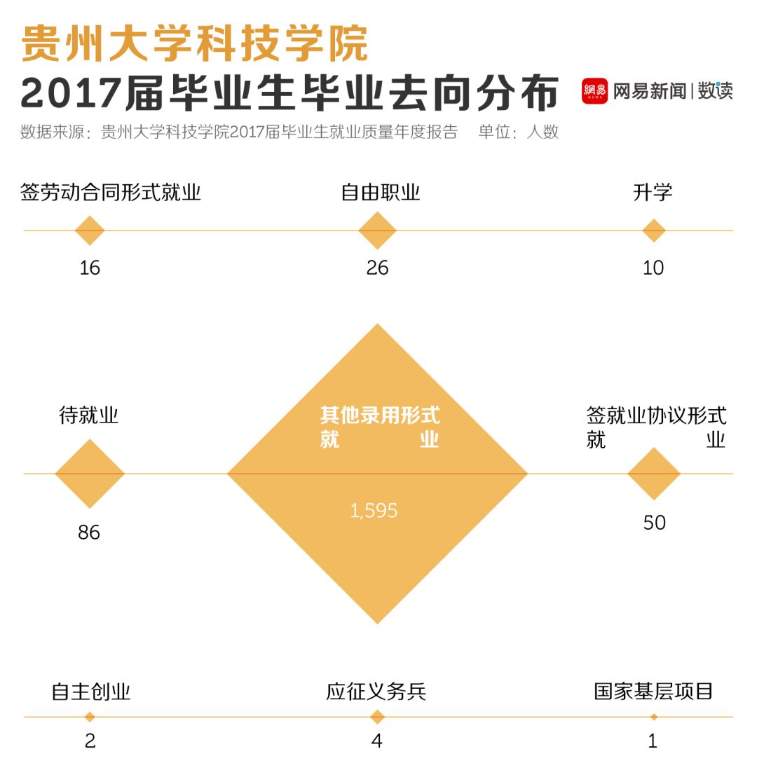 例如贵州大学科技学院发布的这份就业质量报告,就出现了一个很神奇的数字——该校2017届毕业生中有将近90%的人去向为“其他录用形式就业”。