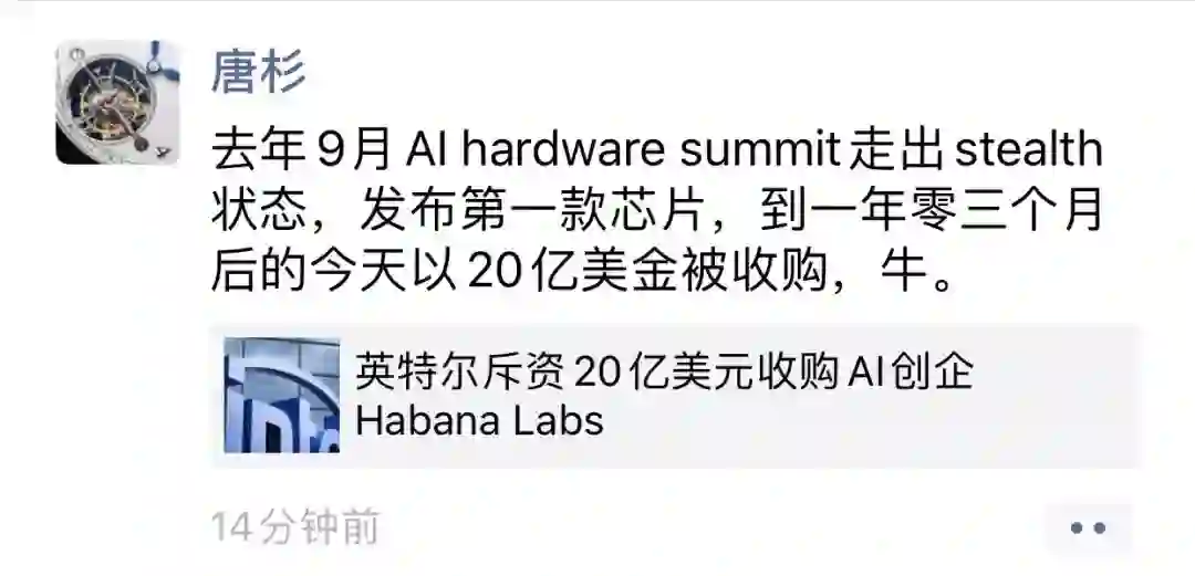 12月16日,英特尔正式宣布以20亿美元收购Habana Labs。这是继153亿美元收购Mobileye、3.5亿美元收购Nervana之后,英特尔第三次收购大型人工智能初创公司。