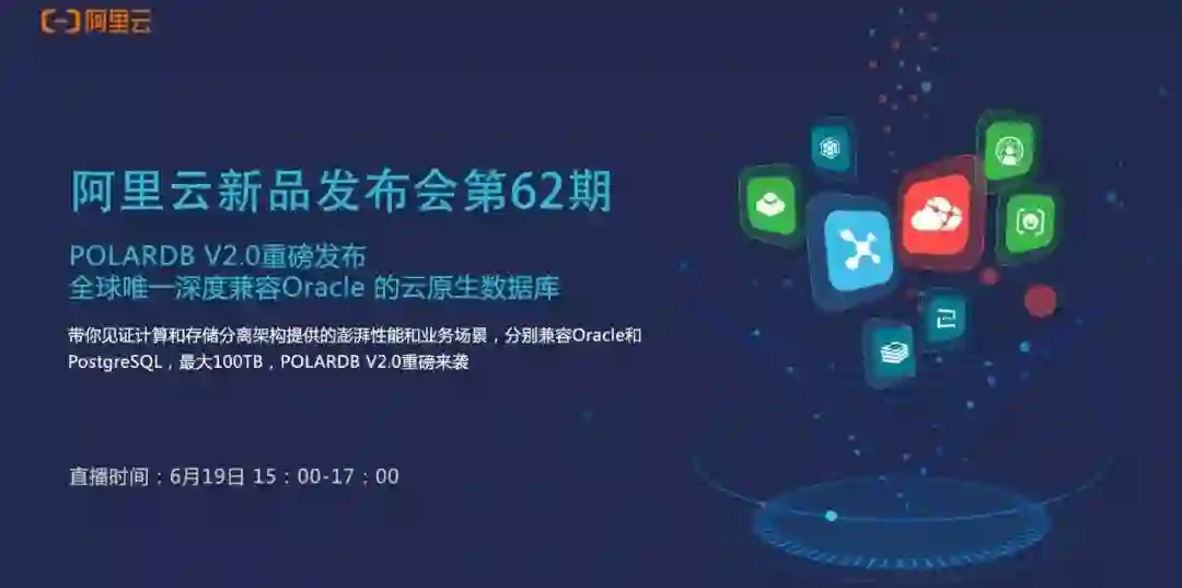 全球唯一深度兼容Oracle的云原生数据库——POLARDB V2.0重磅发布!6月19日 15:00-17:00,诚邀您和我们一起见证计算和存储分离架构提供的澎湃性能和业务场景!