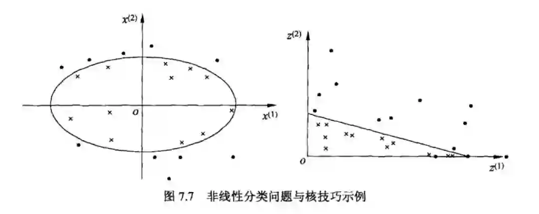 对于在原始空间中不可分的问题,在高维空间中是线性可分的。