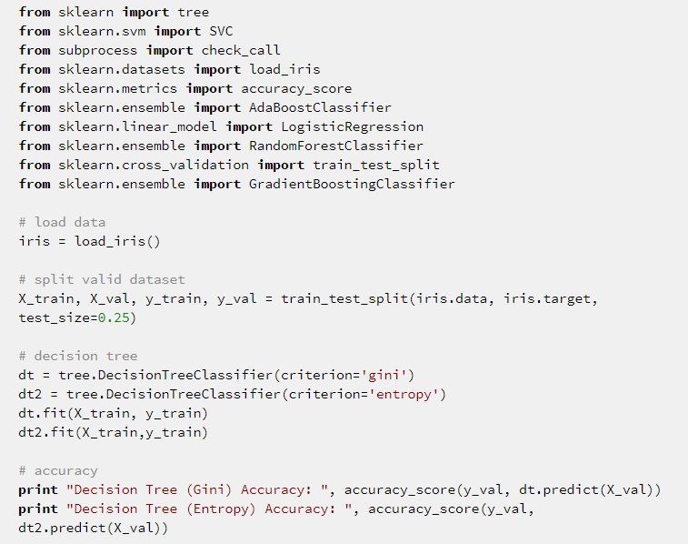 使用 sklearn 用决策树来进行莺尾花数据集的划分问题。代码上没有固定随机种子,所以每次运行的结果会稍有不同。