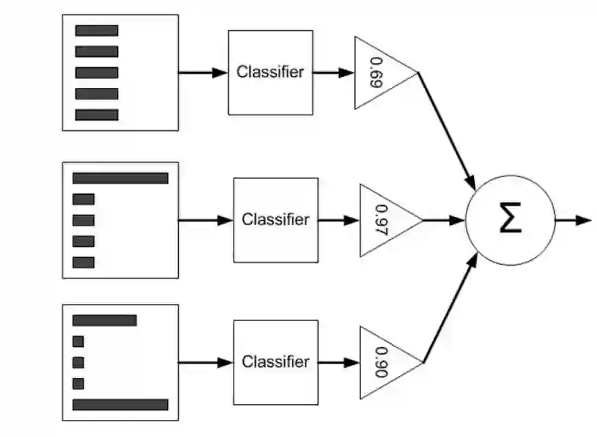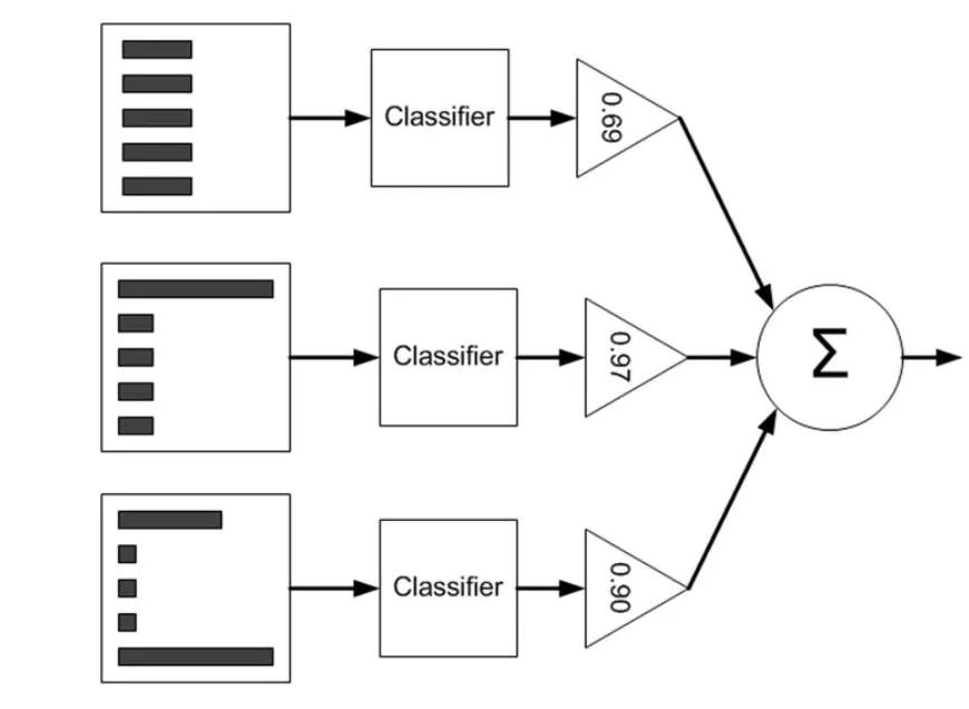 (2)采用加权多数表决。具体的,加大分类错误率低的分类器的权值,使其在表决中起较大作用,减少分类误差率大的弱分类器的权值,使其在表决中起较小作用。