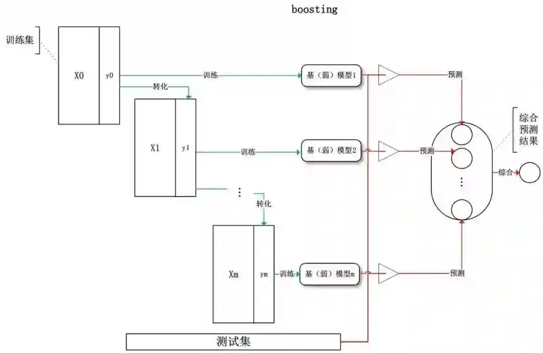 Boosting 是指个体学习器之间存在强依赖关系,必须串行序列化生成的集成学习方法。他的思想来源是三个臭皮匠顶个诸葛亮。Boosting 意为提升,意思是希望将每个弱学习器提升为强学习器。