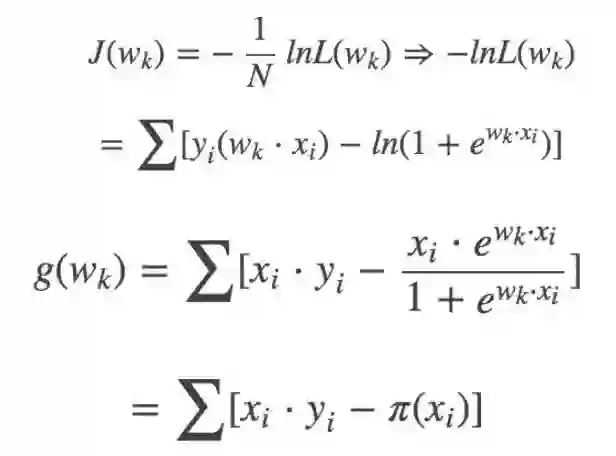 逻辑回归模型的参数估计中,最后就是对 J(W) 求最小值。这种不带约束条件的最优化问题,常用梯度下降或牛顿法来解决。