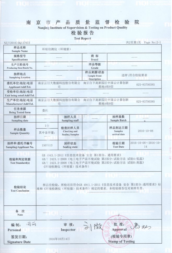 环境猫通过了南京市产品质量监督检察院的质检与美国FCC认证,拥有国家实用新型专利与外观设计专利,国内外多个认证背书,您可以放心购买。