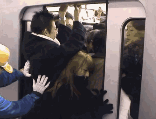 在日本,上班要想不迟到,早起是不够的,还得有豁出命去挤地铁的魄力,因为日本上班高峰期的地铁永远都不会出现“下一趟会人少点"的情况。
