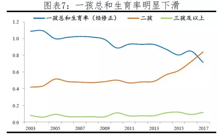 在全面二胎政策开放后的一份统计图里,确实二孩生育率明显上升,但问题是,一孩生育率却大幅下降了。