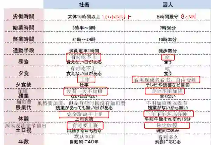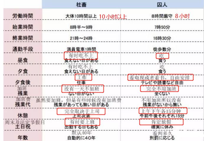 有人把日本上班族和囚犯做了一个对比,结果囚犯完胜。