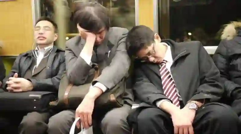 在日本的地铁,你总能遇到走着走着轰然倒地的年轻人,他们可能刚在办公室奋战了几个通宵,累晕了。