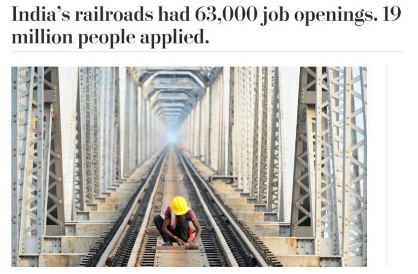 这1900万人竞争的既不是公务员,也不是高薪职位,他们应聘的职位是印度铁路的非正式员工,比如临时帮手,搬运工,清洁工,看门员,助理级的扳道工。