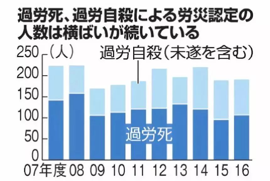 到了2016年,一年过劳死(包括自杀未遂)人数,就飙到了191人。