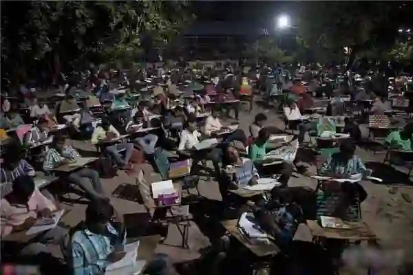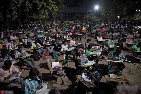 在印度海德拉巴,每天深夜都有几百个人来这里准备应聘考试。