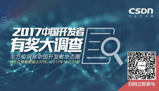 同时,在调查报告正式发布时,参与其中的小伙伴还将率先获得最新鲜的“2017中国开发者白皮书”电子版,了解行业热点与技术趋势快人一步!