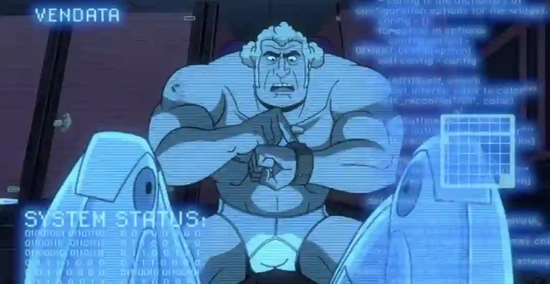 在动画连续剧《冒险兄弟》第7季第3集《科学的欠费》中,出现了故障机器人中的HUD。