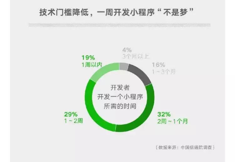 微信本身所具备的低门槛、易开发使其成为编程教育的优质工具。据中国信通院统计,有近五成小程序能在两周之内完成,开发和上线难度远远小于 App,却能实现和 App 不相上下的强功能。