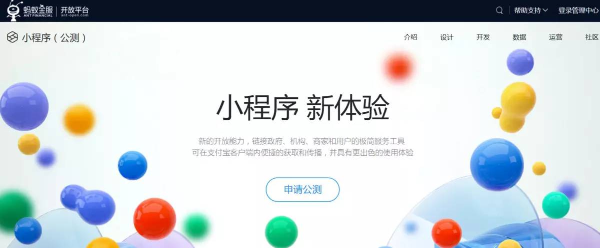 蚂蚁金服表示,公测期间面向企业级用户,即拥有企业支付宝账号的开发者开放小程序,而且只限于出行、医疗健康、政务服务、便民生活四个行业,暂不向个人开发者开放。另外,蚂蚁还表示,未来会向更多行业逐步开放,但不会涉及社交、内容等领域。