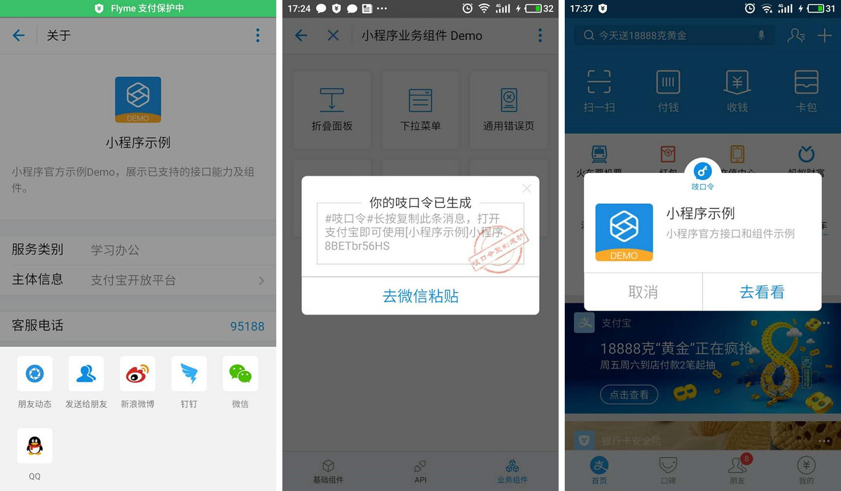 微信小程序开放半年后,支付宝小程序开始公测了。