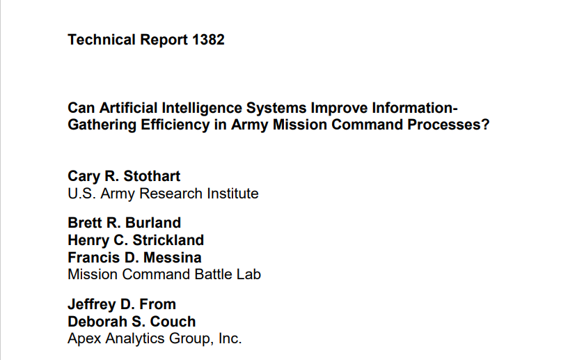 后台回复“A39” 就可以获取《【美国陆军】《人工智能系统能否提高陆军任务指挥过程中的信息收集效率?》39页技术报告》专知下载链接