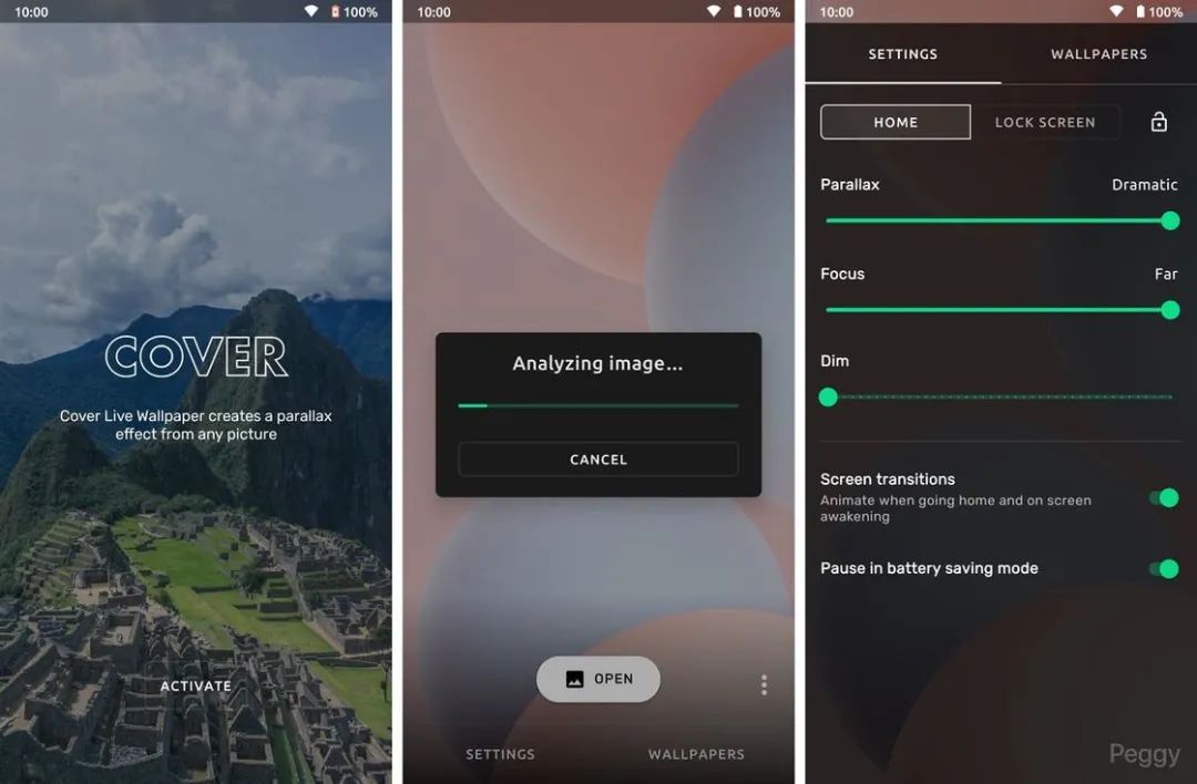 通过分析用户上传的照片,Cover 能够将静态图片转化为动态的形式。设置壁纸后,随着手机的晃动或是页面的切换,原本静态的壁纸也会随之呈现出缩放、晃动等动态效果。