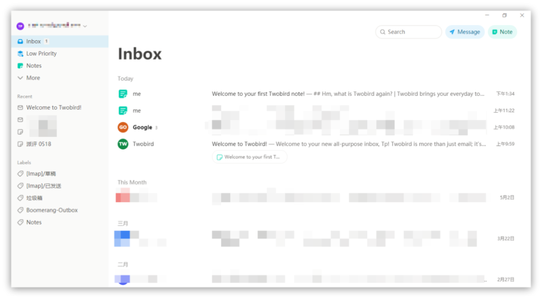@Tp:Twobird 是一款基于 Gmail 的邮箱应用,来自笔记应用 Notability 的开发商。它通过 Gmail 账户在应用内将备忘录、待办事项等每日工具整合起来。如果你是 Gmail 的深度用户,在 Twobird 里,你可以同时完成邮件的收发整理、创建备忘笔记和提醒事项等操作。