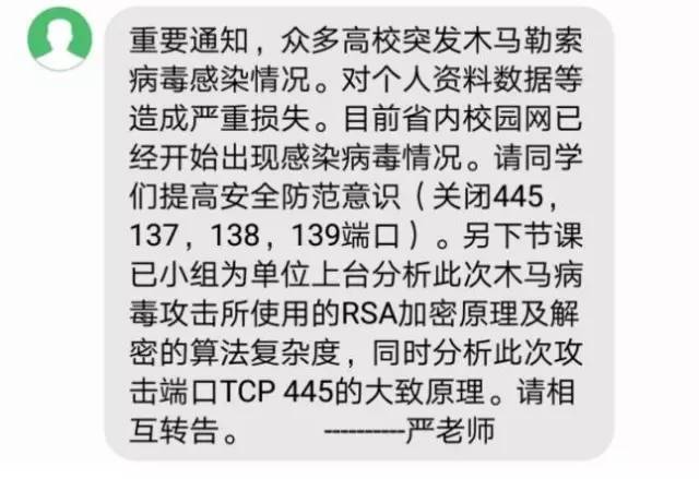 而对于中国的网民来说,此次事件主要表现在一些高校的网站上,据报道,5月12日20时左右,国内部分高校学生表示当天晚上就已中招,许多毕业生同学在写论文的过程中没能免遭侵袭,文档被加密,攻击者称需支付比特币解锁,感觉瞬间有了无力回天的想法。目前受影响的有贺州学院、桂林电子科技大学、桂林航天工业学院、大连海事大学、山东大学等。