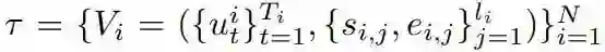 保留故事型长视频裁剪问题的数学形式类似于时间动作定位(temporal action localization)问题。其训练数据集可以表示为: