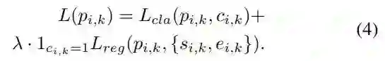 s_{i,k} 和 e_{i,k} 分别是通过最大 IoU 选择的 p_{i,k} 的 ground-truth 故事的起点索引和终点索引。