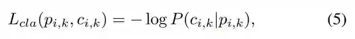 其中 c_{i,k} 是提议的标签,P(c_{i,k}|p_{i,k}) 是由多层 FF-LSTM、最大池化和二元分类器定义的分类分数。