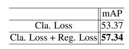 下表 5 总结了回归损失的控制变量研究结果。可以看到,增加回归损失实现了近 4.0 的 mAP 提升。