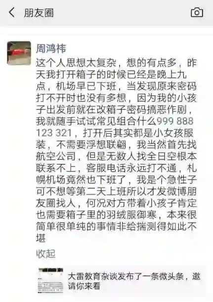 周鸿祎在日本拿错行李箱